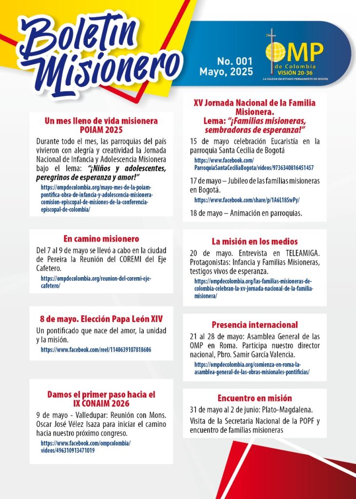 Con gran alegría, las Obras Misionales Pontificias de Colombia anunciamos el inicio del Mes Misionero 2025, un tiempo de oración, compromiso y solidaridad con la misión universal de la Iglesia.
