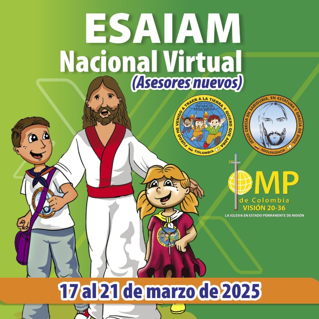 Con alegría, damos inicio a la Escuela de Asesores de la Infancia y Adolescencia Misionera (ESAIAM) Nacional Virtual 2024, un espacio de formación que busca fortalecer la labor de los nuevos asesores en el acompañamiento de los niños y adolescentes misioneros en las diferentes Jurisdicciones Eclesiásticas del país.