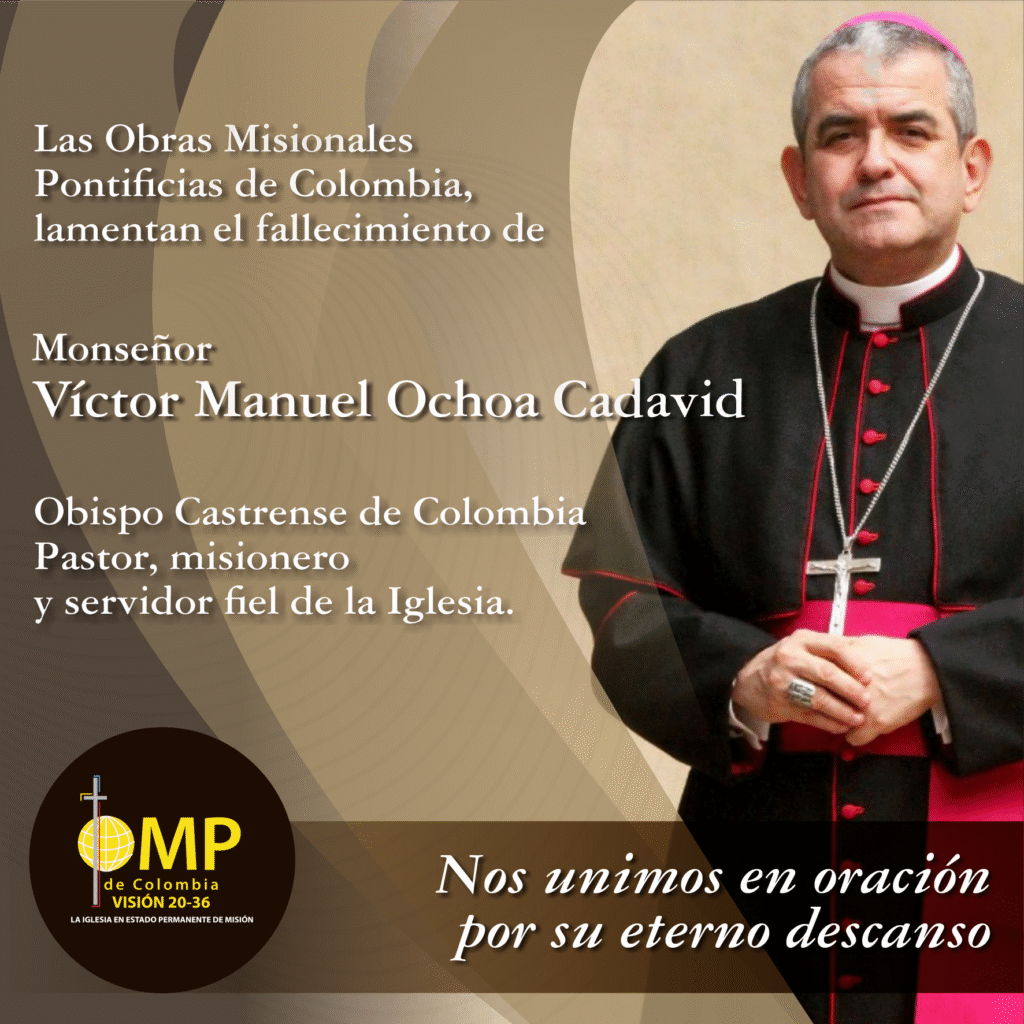 Con profundo dolor, pero con la esperanza puesta en Cristo Resucitado, las Obras Misionales Pontificias de Colombia lamentan el fallecimiento de monseñor Víctor Manuel Ochoa Cadavid, Obispo Castrense de Colombia, ocurrido el domingo 1 de junio de 2025.